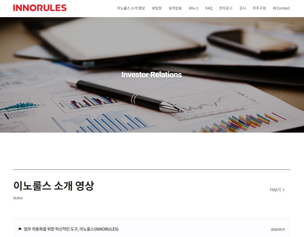 이노룰스가 투자자들을 위한 온라인 IR Page를 오픈했다.