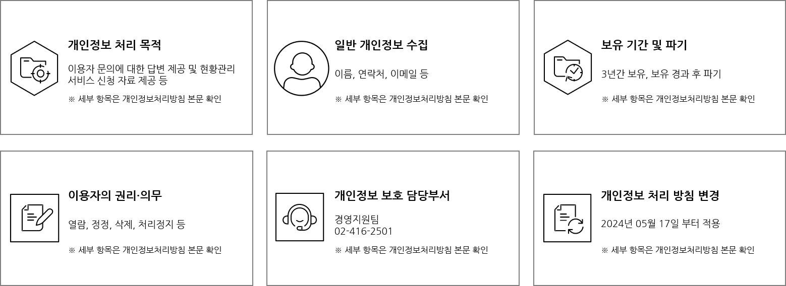 바라며, 방문하신 사이트의 개인정보처리방침은 회사와 무관하므로 새로 방문한 사이트의 정책을 확인하시기