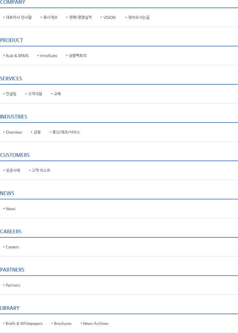 BRMS 기반의 상품 팩토리솔루션으로 업무/IT 혁신을이루시기 바랍니다.